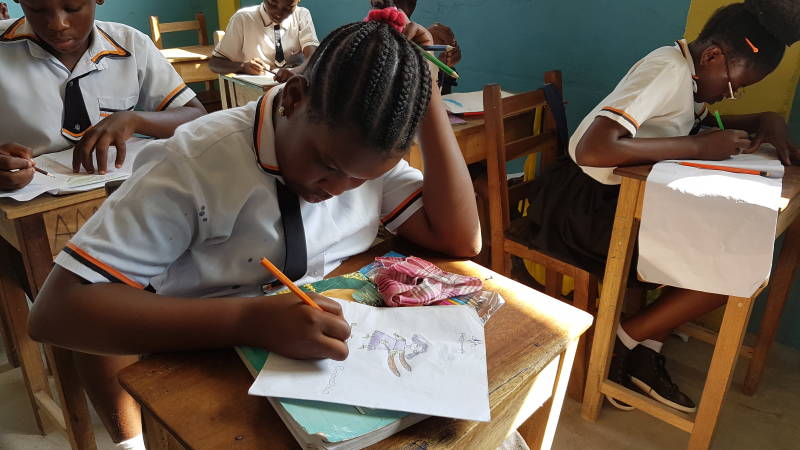 Onze drie dagen op school vielen voor ons tegen. De kinderen hadden tussentijdse toetsen en wij konden daardoor geen lessen geven. Deze dagen hebben wij twee veel aan ons onderzoek gewerkt terwijl Sammy en Maurenna de kinderen, de omgeving en wat van de stad ontdekten. Wij gingen ook wel eens even mee. Omdat de leerlingen donderdag en vrijdag vrij hadden, begon woensdag na school direct ons weekend. We gingen de stad in, want Sammy en Maurenna wilden nog een jurk laten maken, naast de jurken die ze deze morgen onder schooltijd hadden besteld. Ze weten ook nooit te stoppen met shoppen. Nadat we de trotro niet uit mochten, omdat we hadden betaald tot een wijk verderop, liepen we een beetje rond te dwalen in Kumasi. We konden niet echt vinden wat we zochten en na een tijdje gingen we maar een colaatje drinken en een sinaasappel eten. Op een gegeven moment viel ons oog op een mooie traditionele jurk en toen we daar aankwamen, werden we vrolijk ontvangen door vrolijke kleermaaksters. Maurenna zocht een stof en een design uit en terwijl zij werd opgemeten, vlocht ik het haar van een van de kleermaaksters in. Met vette handen zocht ik vervolgens samen met Nathalie allemaal resten van lapjes uit en kochten dit voor een klein prijsje. Opeens was het al half zes en om zes en nadat we wat bananen, eieren en Priscilla rijker waren, gingen we snel terug naar huis. Hier maakten wij ons favoriete gerecht: Pannenkoeken! Twee vrienden van Priscilla kwamen ook en na lang gebakken te hebben, aten we de pannenkoeken met zijn allen op. Na wat liedjes en dansjes namen we afscheid van Priscilla haar vrienden en gingen we onze tas inpakken! De volgende dag zouden we namelijk vroeg vertrekken naar Accra!